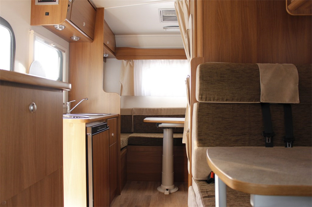 基础参数长*宽*高(mm):5950*2350*3140燃油种类:汽油排放标准:GB14762-2008第Ⅳ阶段车内更大宽度(mm): 2200车内更大高度(mm): 2000或2400清水箱容积(L): 85生活废水箱容积(L): 40×2坐便污水箱容积(L): 17座位数(个):2-6床位数(个): 4+2前部(升降)床位尺寸(长×宽)mm:2000×1250前沙发(中部床位)尺寸(长×宽)mm:930×635(965)后部床位尺寸(长×宽)mm:2200×1290洗手间尺寸(宽×深)mm:850×800衣柜尺寸(宽×深×高)mm:2200×1350×450热水供应系统:Truma-Therme/Combi 4燃气灶:THETFORD-330(3炉-1.5kw×3)冰箱:THETFORD-N3100马桶:THETFORD-C200